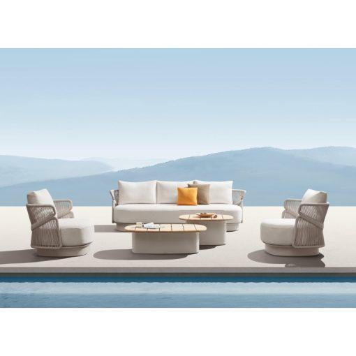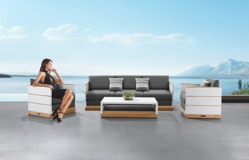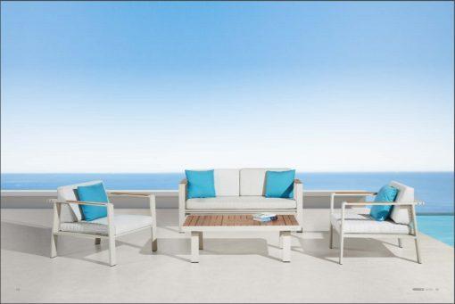 5 585 €Zostava sa skladá z dvoch kresiel, sedačky, oválneho konferenčného stolíka, príručného stolíka a vonkajšieho koberca.