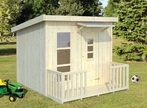 1 081,4 €Detský domček s modernou rovnou strechou, oplotenou verandou a rozmermi 163 x 199 cm. -