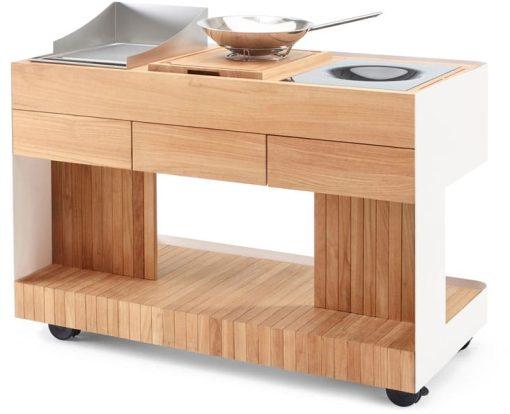 4 842 €Vonkajšia kuchyňa z teakového dreva a lakovaného hliníku s možnosťou pripojenia na plyn alebo elektrinu. -