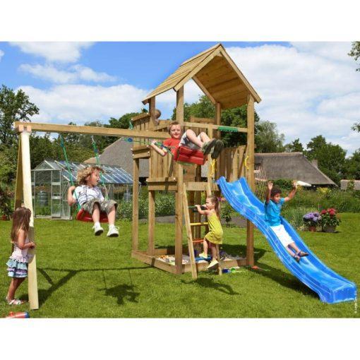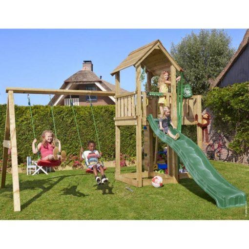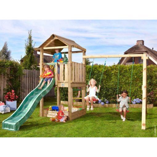 Ihrisko Jungle Cottage so šmykľavkou a modulom 2-Swing Frame