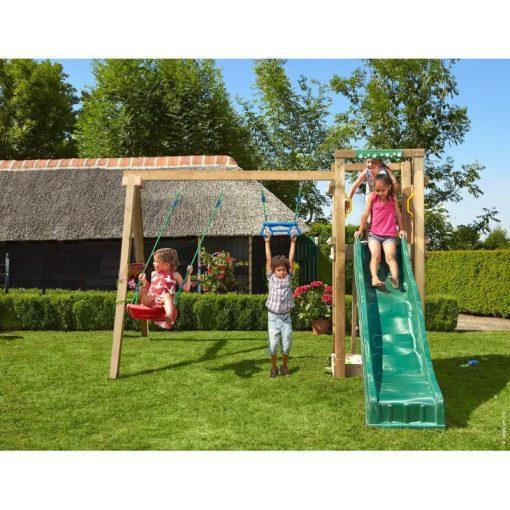 Ihrisko Jungle Chalet so šmykľavkou a modulom 2-Swing Frame 2.0