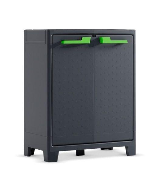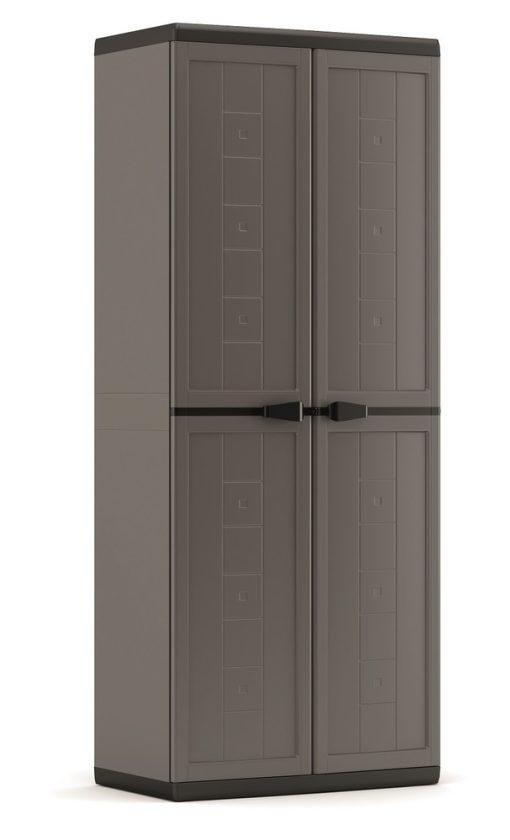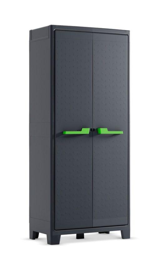 153,5 €Bezúdržbová skriňa do garáže, dielne i domácnosti, montáž 1 hornej a 3 dolných poličiek, nosnosť 1 police až 15/10 kg, možnosť uzamknutia, odolnosť voči opotrebovaniu a rozmarom počasia. PP živice. Šedá a čierna. -