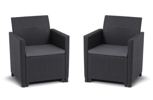 157,6 €Súprava dvoch záhradných kresiel v elegantnej grafitovej farbe. -