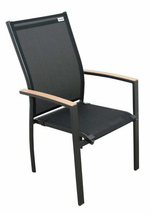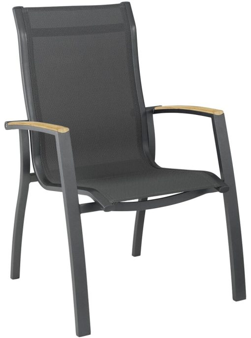 KETTLER ALTURA stohovateľné hliníkové kreslo s teakovými opierkami – antracit / antracit