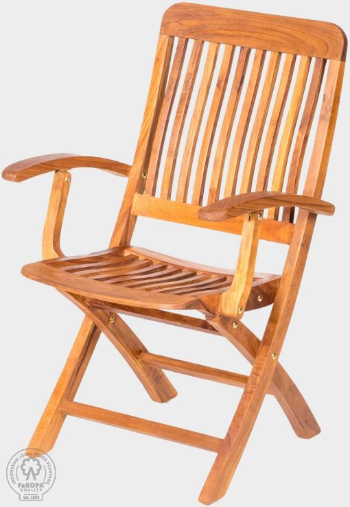 225 €Stohovateľné masívne teakové kreslo s opierkami. -