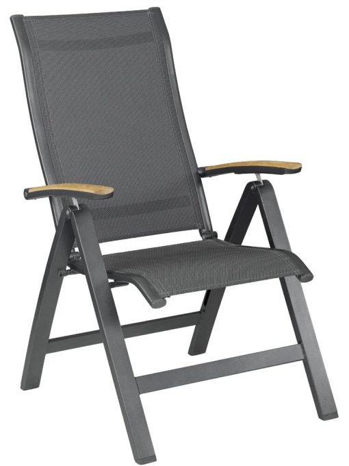 KETTLER ALTURA polohovacie hliníkové kreslo s teakovými opierkami – antracit / antracit