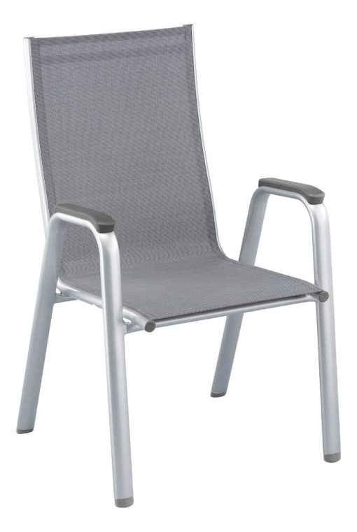 KETTLER BASIC PLUS PADDED stohovateľné hliníkové kreslo – strieborná / antracit