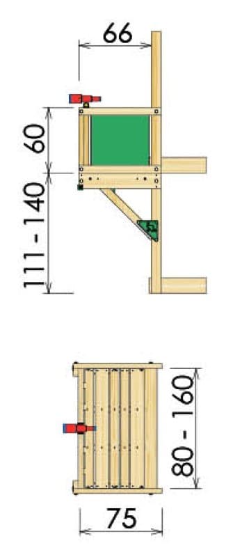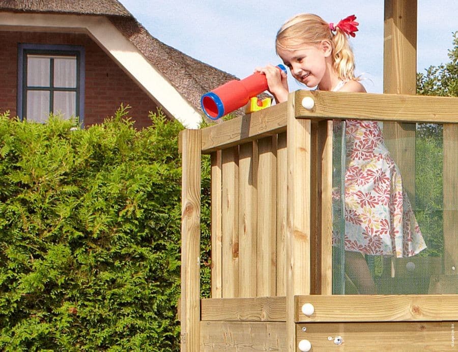 Je to jednoduché rozšírenie hernej veže o malý balkón. Modul má rozmery 80/160 x 66 cm a celkovú výšku 75 cm. Súčasťou dodávky je všetok drevený materiál narezaný na požadovanú dĺžku, jeden plastový detský teleskop, návod na montáž a všetok montážny materiál.