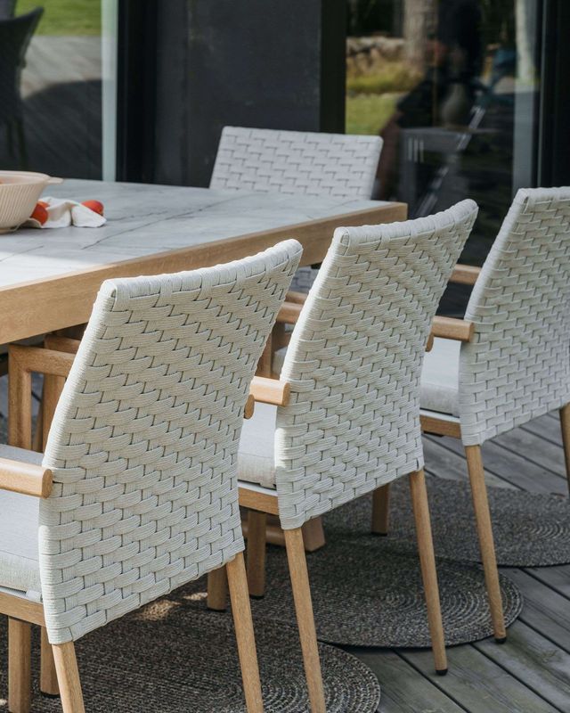 Vankúše z tkaniny COUTUREtex: Materiál odolný voči poveternostným vplyvom odpudzuje vodu aj nečistoty. Vďaka rýchlemu schnutiu môžete stoličky použiť takmer ihneď po daždi.