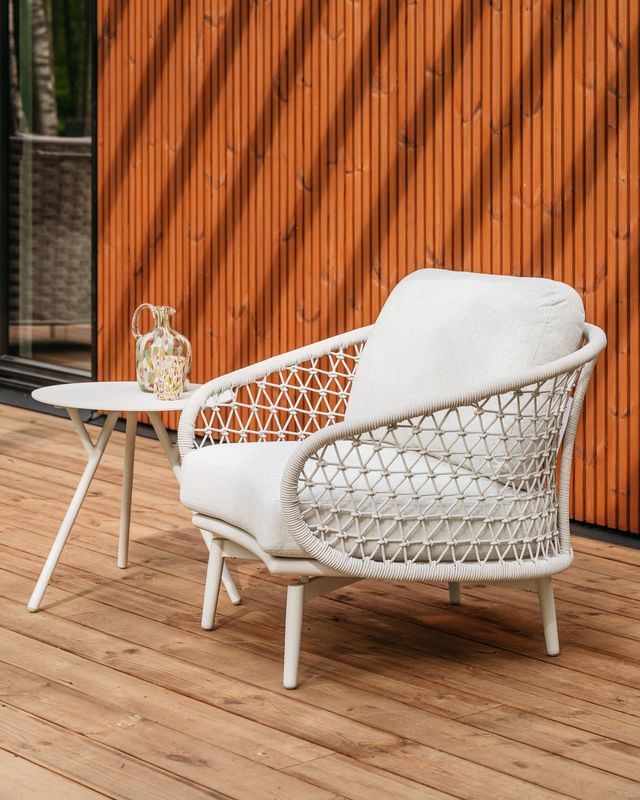 • Rám a výplet: hliníková konštrukcia a pletený výplet v svetlosivej farbe