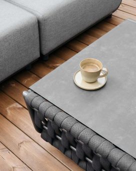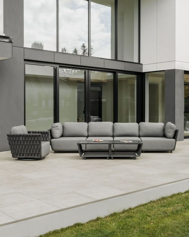 Séria Hug ponúka dokonalú kombináciu komfortu a štýlu. Štandardné moduly, taburet, otočné kreslo, ľahko premiestniteľné stolíky a praktické prístavby vytvárajú moderný a všestranný vonkajší priestor, stvorený na chvíle s rodinou a priateľmi. Taburet (otoman) môžete využiť ako ďalšie miesto na sedenie alebo ním predĺžiť pohovku, čím získate ešte väčšiu flexibilitu.