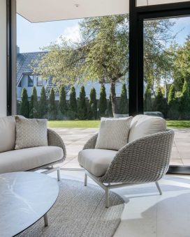 Set Scoop je praktickým doplnkom vašej letnej kolekcie záhradného nábytku – je pohodlný, pútavý a odolný voči poveternostným vplyvom. Malý, ale štýlový konferenčný stolík je dokonalou bodkou za vyváženým exteriérom. Tento nábytok s ľahkým rámom a doskou z HPL laminátu pôsobí vždy pozývajúco. Štýlovo tvarované kreslo ponúka maximálny relax, zatiaľ čo ležadlo Scoop predstavuje dokonalú kombináciu komfortu a krásy. Jemný výplet dodáva nábytku charakter a paleta jemných, svetlých farieb vytvára upokojujúcu atmosféru. Často sú to práve malé detaily, ktoré robia najväčší rozdiel. Priložený taburet (otoman) je všestranný kúsok, ktorý môže slúžiť ako podnožka, prídavné sedadlo alebo predĺženie kresla.