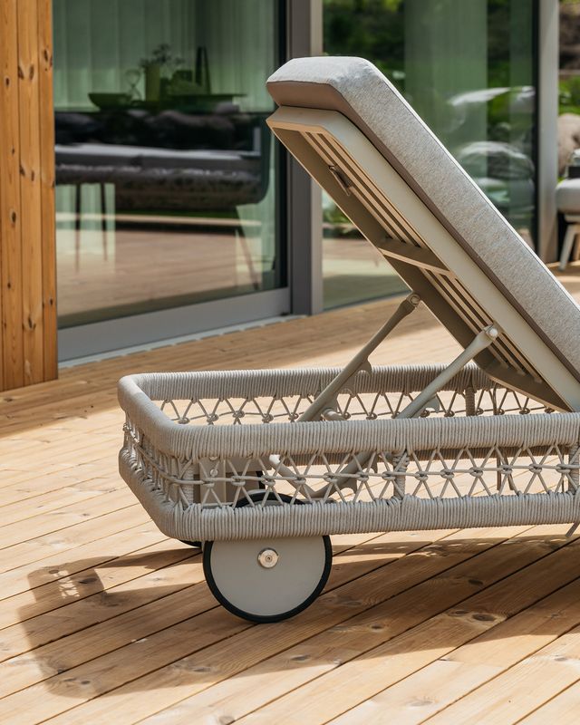 Moderné ležadlo s unikátnym dizajnom a nastaviteľným operadlom. Praktické kolieska umožňujú jednoduchý presun presne tam, kde si práve chcete vychutnať najviac slnečných lúčov.