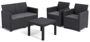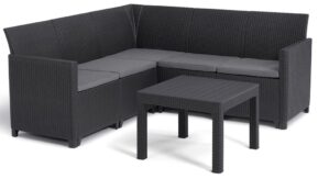 - Hliníková konštrukcia opletená plochým PE ratanom šedej farby