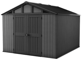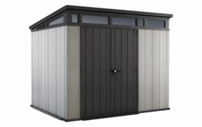 Domček PENT 11×7 je vyrobený z jedinečného plastového materiálu DECOCOAT, ktorý je inšpirovaný moderným vzhľadom v imitácii dreva vo farebnom odtieni ASHWOOD – jaseňové drevo. Domček má robustnú konštrukciu s dvojitými stenami a kovové výstuhy.
