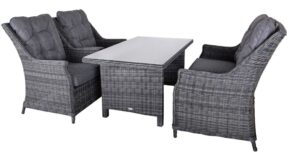 Záhradný nábytok je vyrobený z polyratanu, ktorého použitie zaručuje odolnosť voči poveternostným podmienkam.