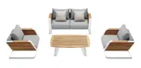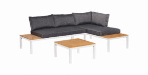 Záhradný set je nielen relaxačný, no zároveň aj praktický, keďže stôl slúži aj ako jedálenský. Oceľová konštrukcia je ošetrená povrchovou úpravou proti korózii a následne práškovým nástrekom. Je opletená umelým ratanom v svetlosivej farbe. Všetky použité materiály sú odolné voči poveternostným vplyvom a takmer nevyžadujú údržbu.