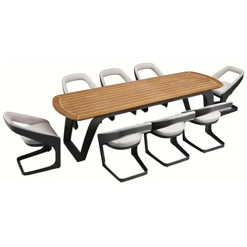 Kolekcia charakterizovaná použitím kvalitných materiálov, navrhnutých tak, aby zaručili trvanlivosť a odolnosť voči poveternostným vplyvom. Vysoko kvalitná teaková štruktúra v kombinácii s technickými tkaninami odolnými voči vode a UV žiareniu ponúka dokonalé riešenia pre vonkajšie prostredie. Každý prvok kolekcie je navrhnutý tak, aby si zachoval svoju krásu a funkčnosť aj po rokoch.