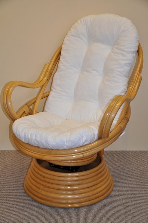 Hojdacie kreslo Swivel hnedej farby z prírodného ratanu.