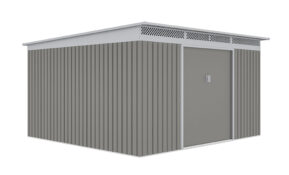 Záhradné domčeky na náradie v modernom dizajne sa hodia do každej záhrady. Vstupné dvere sú dostatočne široké, preto do domčeka pohodlne uložíte svoje náradie, záhradný fúrik aj vonkajší nábytok.