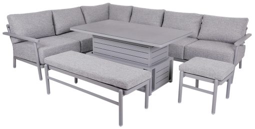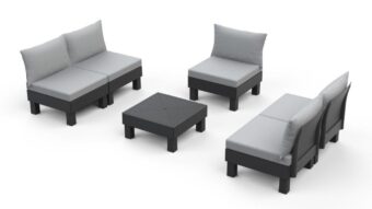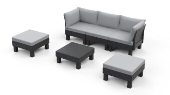 Modulárny set, 5 miest na sedenie, odolnosť voči UV žiareniu a poveternostným podmienkam, vysoké podsedáky so spodnou protišmykovou úpravou pre väčšie pohodlie, jednoduchá údržba aj montáž.